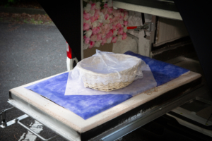 ご自宅前に停めた火葬車までお連れ頂き、火葬炉でのお別れをして頂きました。お花とおやつをたくさんご用意されていましたね。